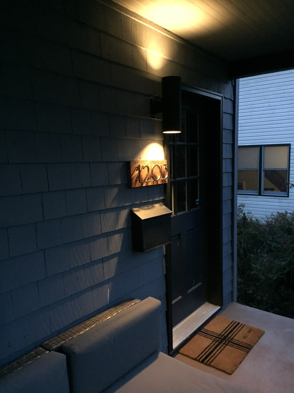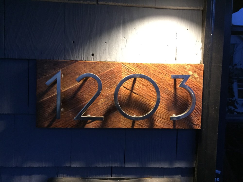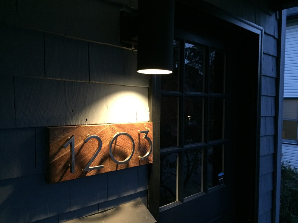 A customer wanted these house numbers to really pop from the street. This backing plate for these numbers was crafted out of reclaimed pine and assembled into this simple but elegant chevron pattern. The result was an effective and beautiful detail to the facade of this Baltimore home.