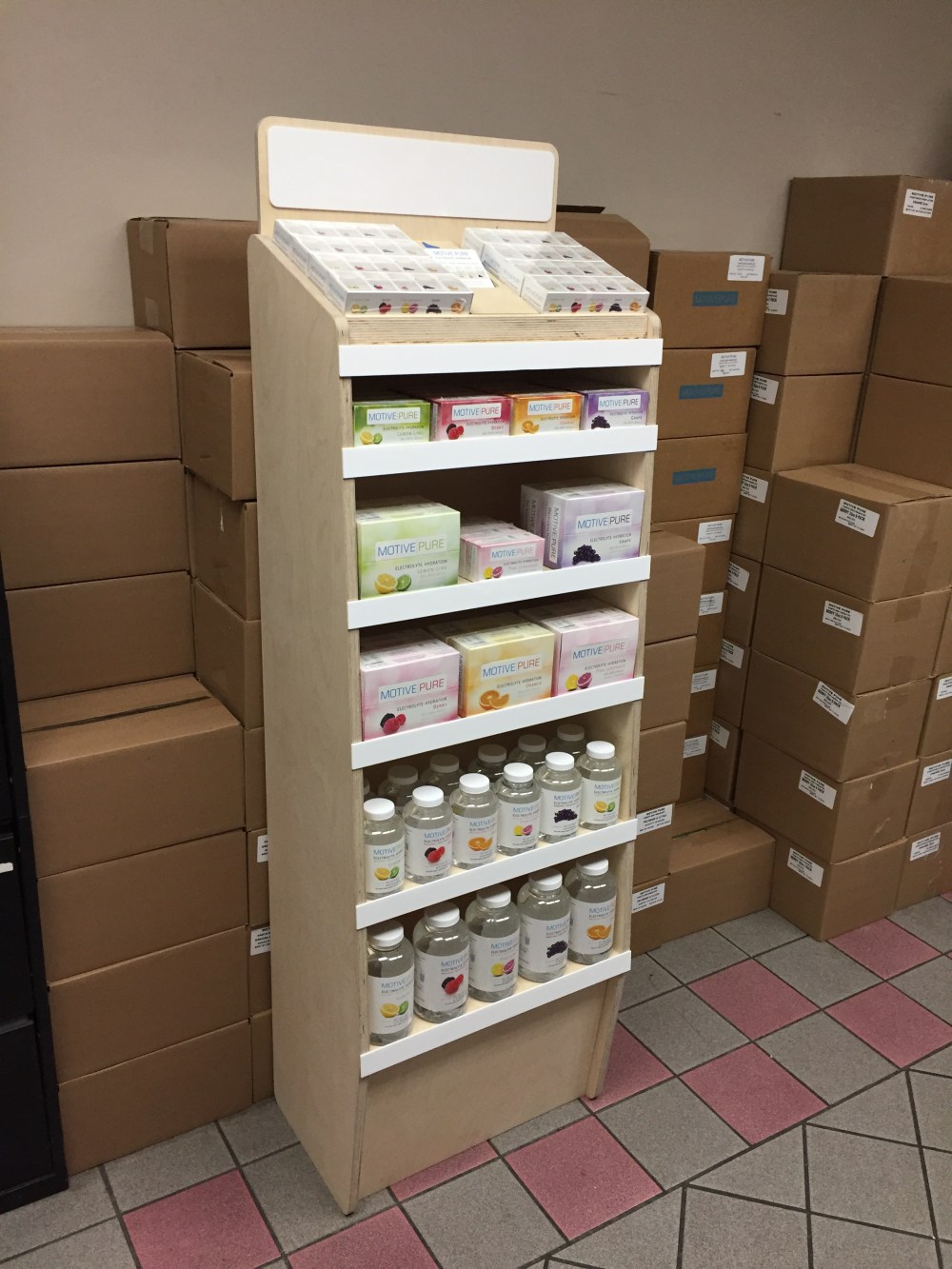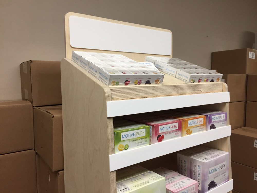 Motive Pure, a Maryland-based sports drink company needed a mock-up for a grocery store display to determine graphics and feasibility. Graphite Woodworking developed design with the client using 3D software and production was a collaboration with a local CNC shop.