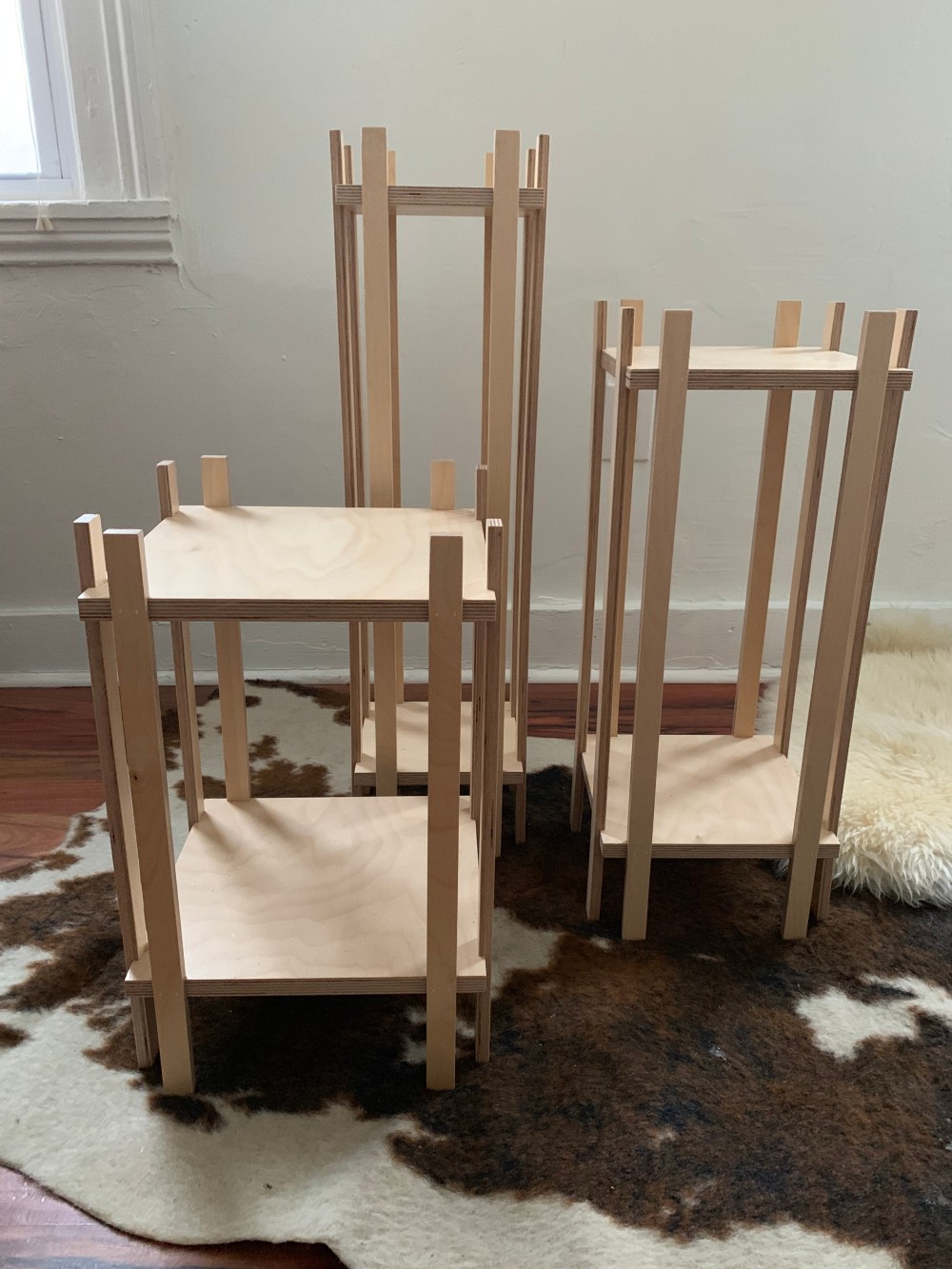These simple yet elegant plant stands are built from top quality Baltic birch plywood and were designed in the Fall of 2018. They come in three sizes: 8x8x30 ($110), 10x10x24 ($120), and 12x12x18 ($130). All sizes available for purchase and save $40 when you buy all three as a set ($320). Other custom finishing options are available. Please contact me if you’d like to purchase one today!