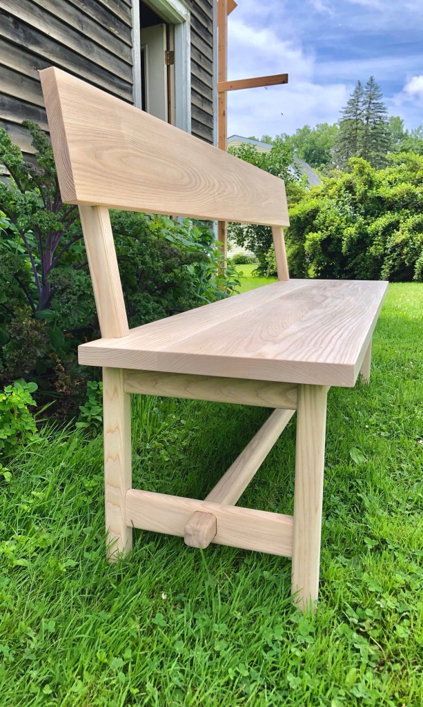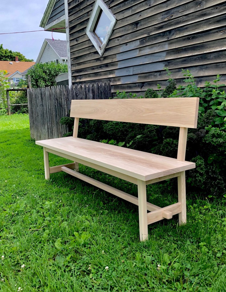1. I stained it lightly with a mix of Minwax Early American and Natural stains to darken the wood a bit to better match existing table and chairs that are approximately 30 years old. Finished with satin polyurethane for better wear. It’s quite comfortable.