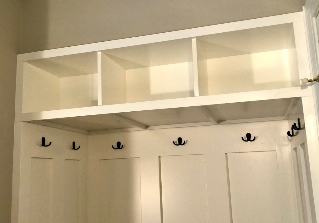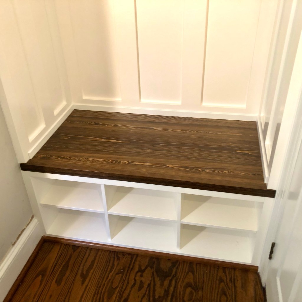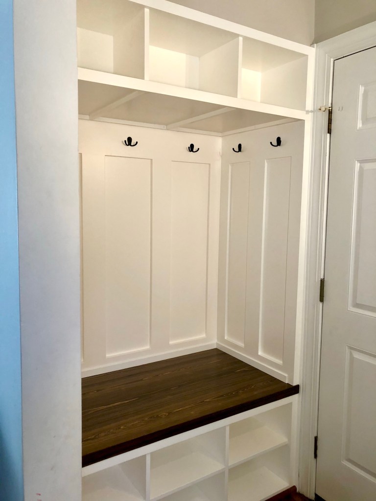 This small built-in, filled an odd nook at the door to the garage in this house in Annapolis. The nook was truly just left over dead space that was only good for storing shoes.