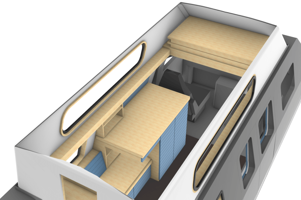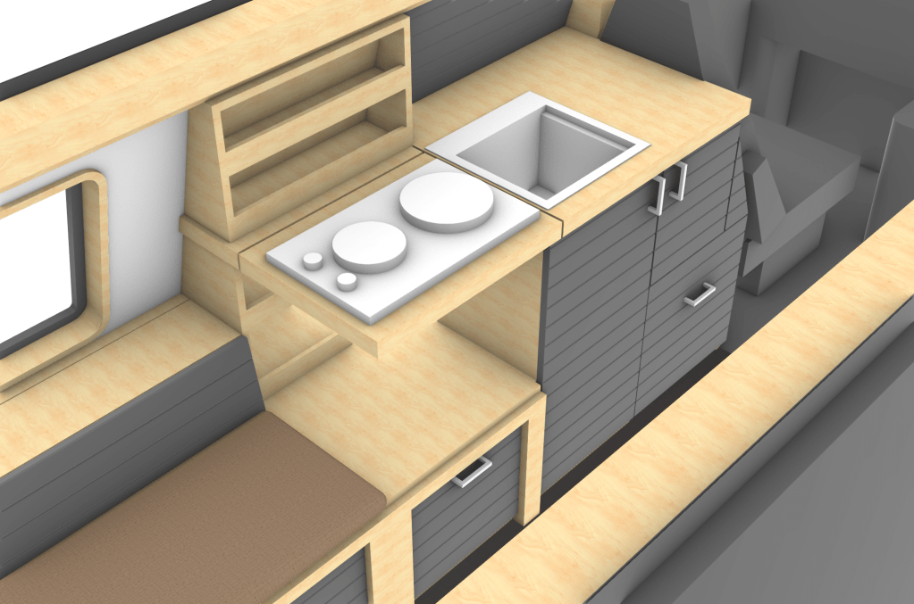 This model and design was used for the estimating and planning of the project, the engineering of solar electrical and water systems, and the construction of the space. This camper project is currently under construction and is expected to be completed in the spring of 2023.
